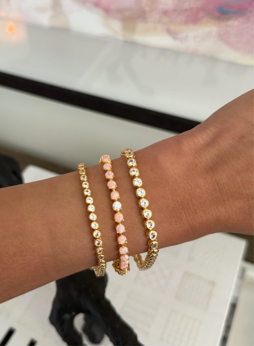 Inspired by our favorite signature drinks and the memories made while sipping them, our Cocktail Opal Bracelet Collection is all about color, sparkle, and fun. Each bracelet is crafted in sterling silver with rich gold plating, vibrant opals, and our signature single offset lab diamond — the KG Designed touch you know and love.