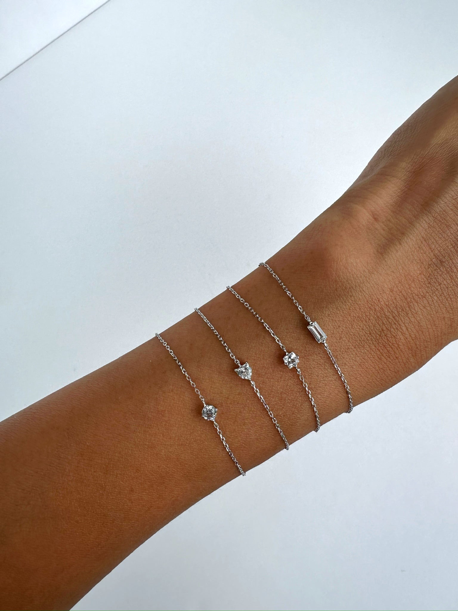 Introducing our Dainty Little Thing Bracelet, the ideal accessory for adding a subtle touch of sophistication to your wrist. Crafted with meticulous care, this bracelet features a sterling silver chain, adorned with a sparkling white sapphire stone.