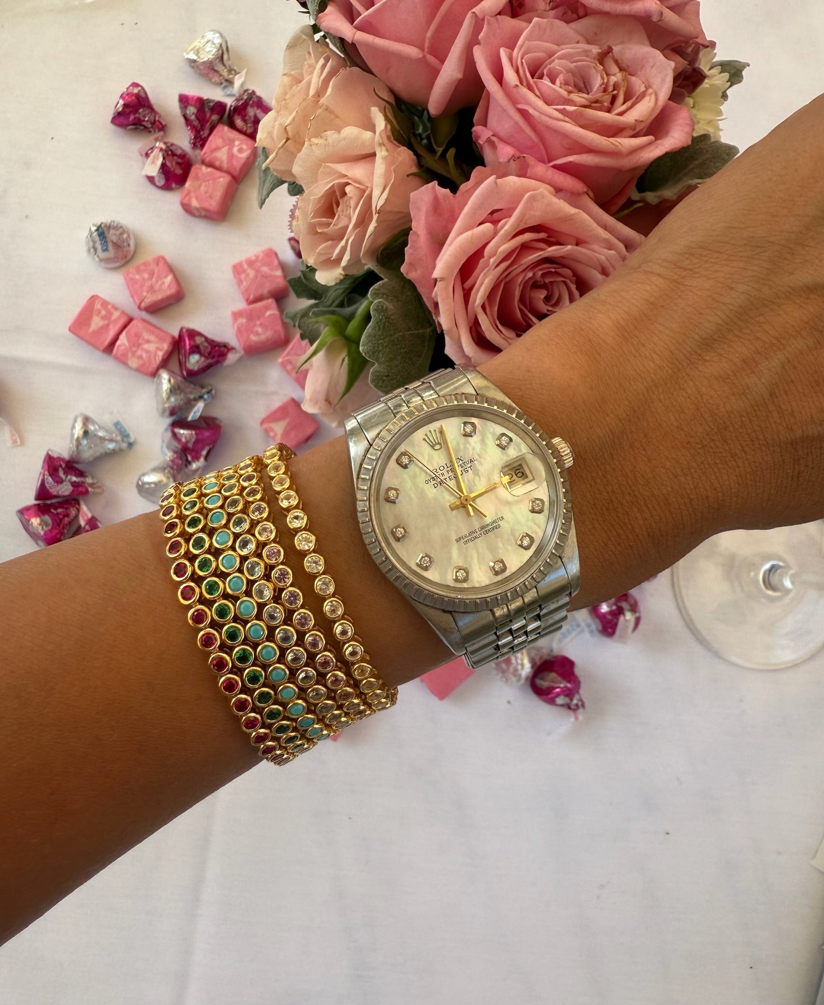 Crafted with sleek bezel settings and just-right pops of sparkle, these minis add elegance to your wrist without overwhelming your stack. Whether you’re playing doubles, watching the match, or heading to brunch after the game, Mini Tennis Bracelets are your new everyday go-to.