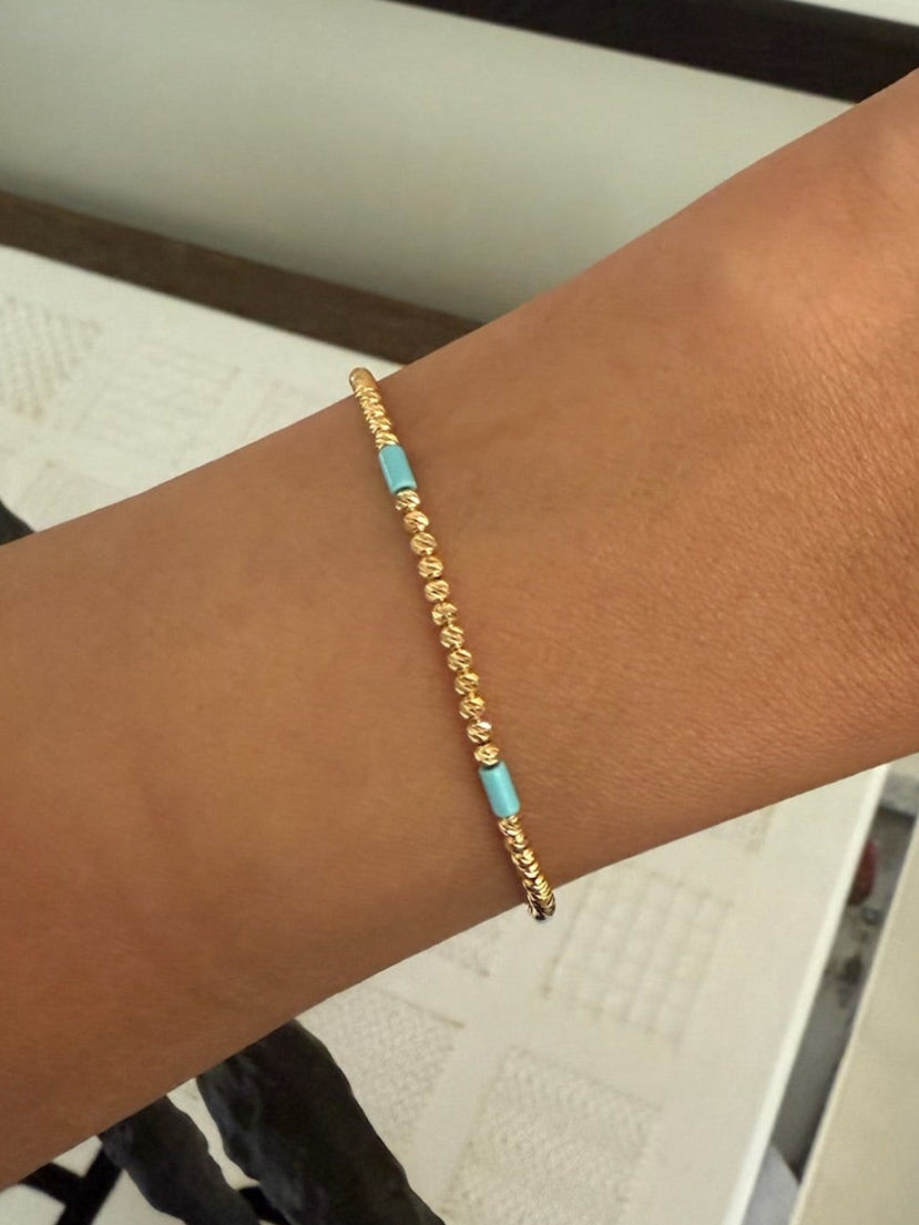 Delicate, timeless, and effortlessly chic — The Hadley Bracelet is the dainty 14k gold piece your jewelry stack has been waiting for. Choose between sleek black onyx or vibrant turquoise tube accents for a subtle pop of color and elegance.