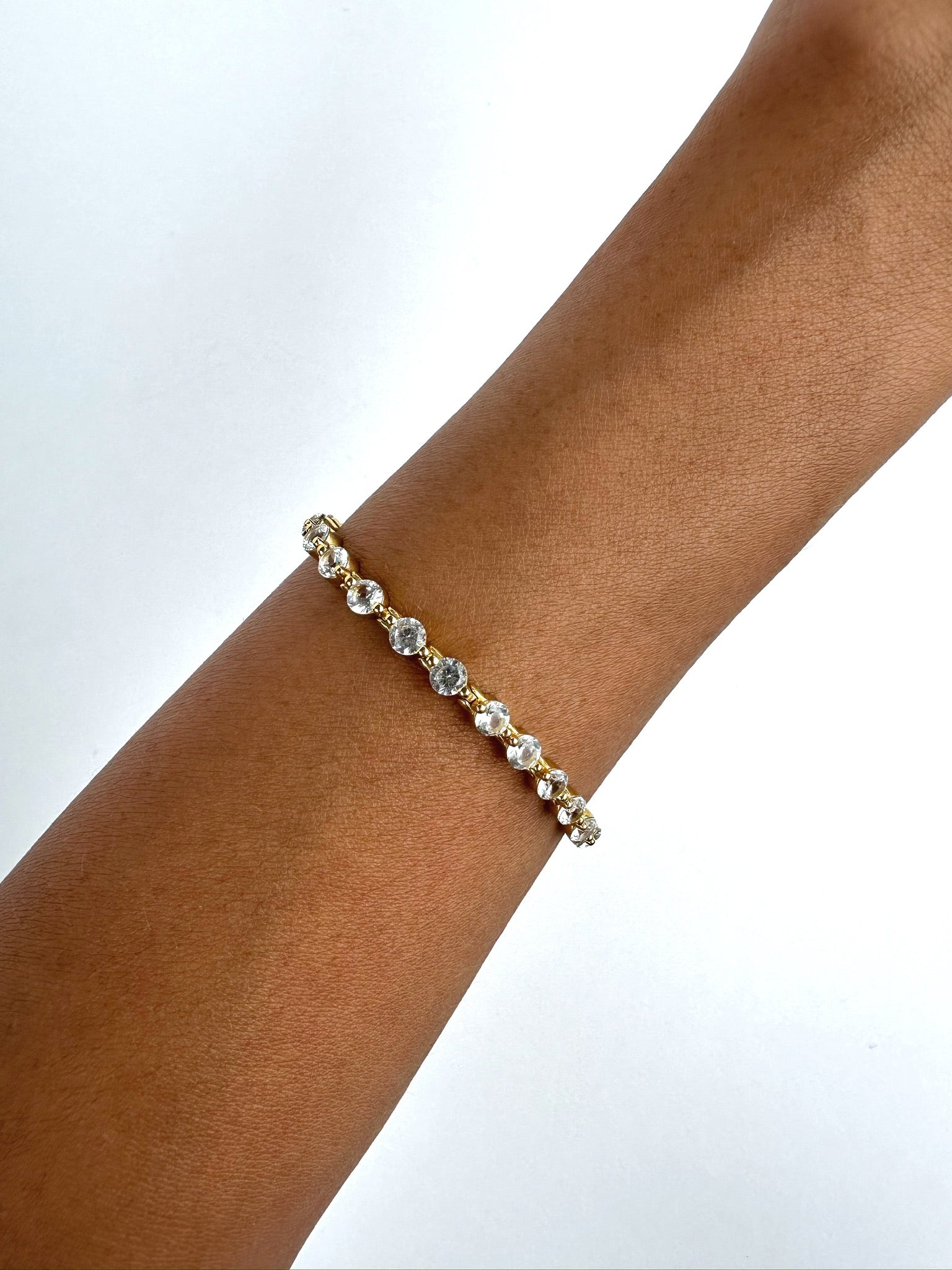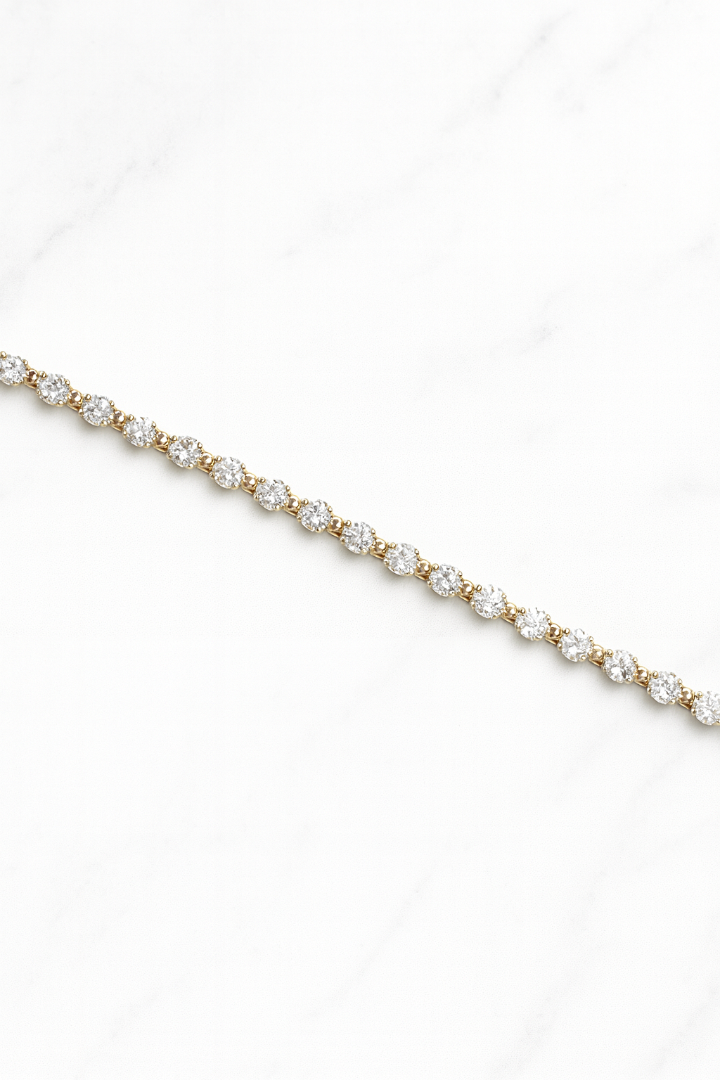 Introducing our Addison Two-Prong Tennis Bracelet, a fresh take on the classic tennis bracelet with a distinctive twist. Featuring lab-grown white sapphires set in an innovative design, this bracelet is available in both sterling silver and sterling silver gold-plated finishes. It's the perfect addition to mix and match with other metals or to enhance your everyday stack.
